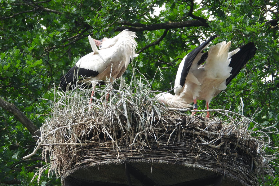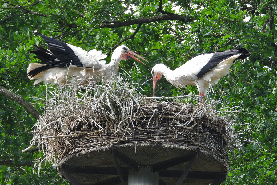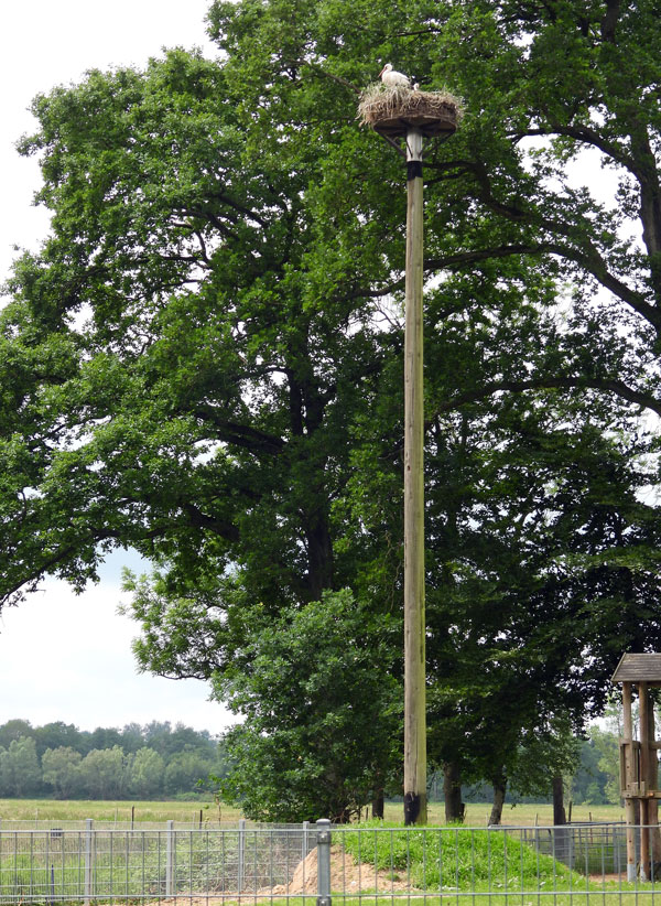 Perché au sommet d’un poteau en bois, à plus de 12m du sol, le nid occupé par la Cigogne blanche « Porrentruy » à Hagenah, dans le nord de l’Allemagne, ressemble à celui qui l’a vu naître, il y a 5 ans, à Porrentruy.